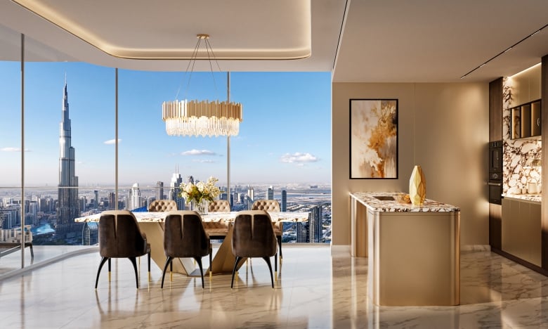 Every unit offering a skyline view, the sea or the Burj Khalifa